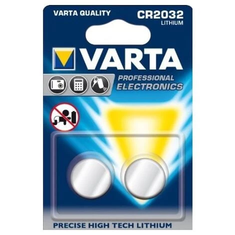 Blister de 2 VARTA CR2032 Type : Lithium MnO2 Marque : VARTA Tension : 3V Capacité : 235mAh Dimensions : 20.0 x 3.2mm Formats compatibles : DL2032, BR2032, KL2032, L2032, ECR2032, 5004LC, KCR2032, E-CR2032, KECR2032, SB-T15