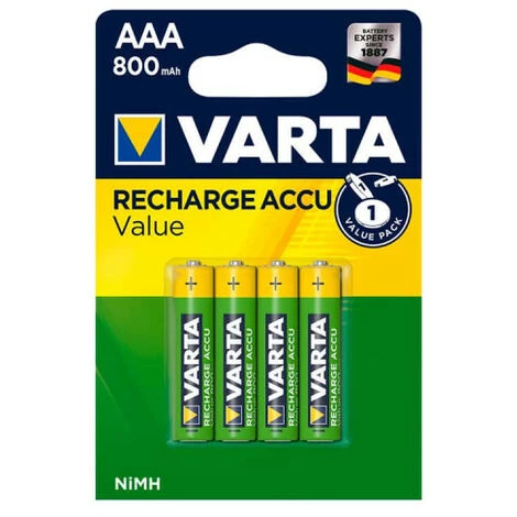 4 Piles LR03 VARTA AAA Rechargeables 800mAh, idéales pour remplacer les piles usées de vos appareils électriques. Ses piles rechargeables seront votre solution contre les achats répétitif de piles.