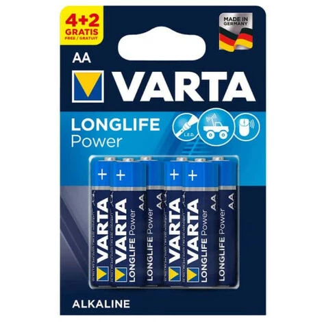6 Piles LR6 AA VARTA Alcaline, idéales pour remplacer les piles usées de vos appareils électriques.