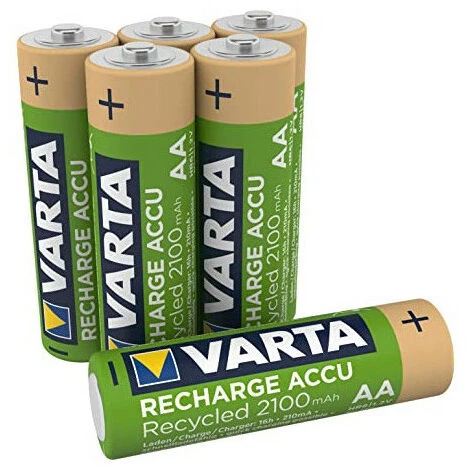 Accu recyclé AA 2100 mAh – 11% de matériaux recyclés inclus – technologie Ready to Use pour une utilisation immédiate – faible taux de décharge : 70% de capacité restante après 12 mois