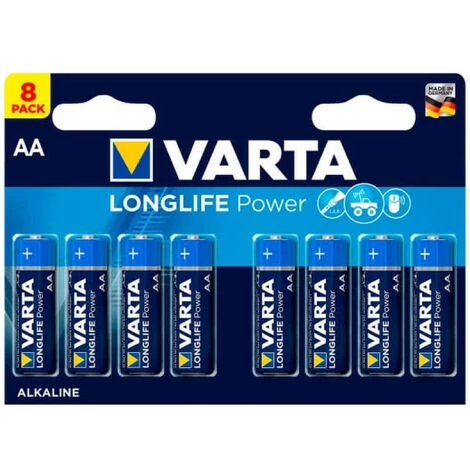 8 Piles LR6 AA VARTA Long Life, idéales pour remplacer les piles usées de vos appareils électriques.