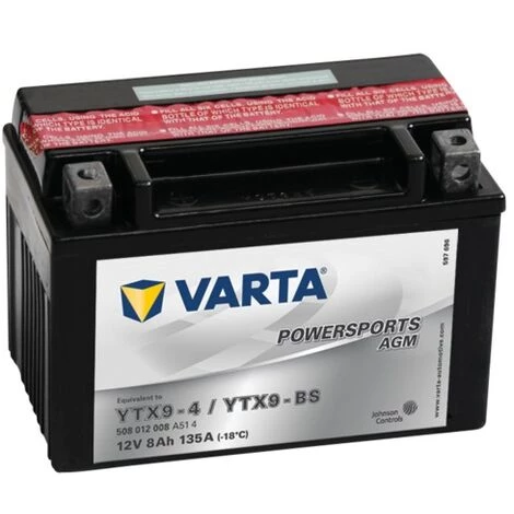 Capacité (Ah) : 8 Poids (rempli) : 2.5 kg Connexion : 1 Poids (vide) : 3.08 kg Largeur : 88 mm Démarrage à froid EN : 135 A Hauteur (mm) : 106 Borne : Y5 Tension : 12 V Longueur : 152 mm Les caractéristiques de la Batterie Varta Powersports AGM YTX9-4 – 12V 8Ah 135A La Batterie Varta Powersports AGM YTX9-4 – 12V 8Ah 135A est la batterie parfaite pour les véhicules de sport, elle allie puissance ainsi que fiabilité et efficacité à chaque démarrage. De plus avec sa résistance extrême aux défaillances de batterie, la Batterie Varta Powersports AGM YTX9-4 – 12V 8Ah 135A s’adapte parfaitement pour tout ce qui est motos, scooters, quads, jet-skis, motoneiges, véhicules tout-terrain, mais aussi pour vos tondeuses. La Batterie Varta Powersports AGM YTX9-4 – 12V 8Ah 135A est l’un des produits disponibles d’Agrizone, ses qualificatifs sont les suivants : Référence Agrizone : AGZ000061426 Longueur : 152 mmLargeur : 88 mmHauteur : 106 mmVoltage : 12 VAmpère : 135 AhCapacité : 8Position des bornes : n.c. Les produits à avoir en complément de votre Batterie Varta Powersports AGM YTX9-4 – 12V 8Ah 135A De nombreux accessoires à avoir en supplément de votre batterie sont disponibles chez Agrizone comme : Des câbles et des chargeurs pour batterieDes accessoires spécifiques à celle-ci comme les pinces (crocodiles, en tôle etc), les cosses … Et bien d’autres éléments qui sont à retrouver dans la catégorie pièces électriques du site comme des démarreurs, des pièces pour l’éclairage ou encore des moteurs. Une gamme de batterie varta Powersports très large pour vos motos, scooters, tondeuses etc. Vos véhicules de sports et les tondeuses ayant des besoins spécifiques, la marque Varta a crée une gamme Powersports sous différentes formes de batterie, qui est une pièce fondamentale à tout véhicule. Les différents types sont donc : Si votre véhicule est tout terrain et qu’il s’aventure dans des milieux périlleux, la batterie powersports gel est faite pour vous La powersports freshpack, batterie qui est à la fois puissante, fiable, rentable et facile à mettre en place. Qu’importe votre degré d’utilisation de cette batterie, sa puissance reste constante. La powersports agm : elle est appropriée pour vos régimes élevés et pour tout type de sortie peu importe la météo. Reconnue pour être robuste, ces batteries vous offrent une puissance maximale, une bonne résistance aux vibrations et l’entretien n’est pas nécessaire La powersports gardening. De haute qualité, elle est recommandée pour les engins de jardinage La Batterie Varta Powersports AGM YTX9-4 – 12V 8Ah 135A pourquoi est-ce une bonne option Etant le leader que ce soit dans le secteur des batteries plomb-acides ou celui des batteries à technologies avancées, les batteries varta sont connues dans le monde entier autant pour leur performance que pour leur qualité. De plus la marque est la première dans la conception de batterie Li-on, batteries adaptables aux véhicules hybrides. Les batteries de cette marque conviennent donc à tout type de véhicule : start&stop, électrique, hybride, les basiques. Pour que l’ensemble de ses consommateurs trouvent la batterie qui leur convient le mieux, varta dispose de différentes gammes spécialisées : La gamme automobile La gamme utilitaires lourds (camions, semi-remorques, véhicules agricoles, véhicules de construction etc.) La gamme sports mécaniques (motos, jet-skis, scooters, tondeuse autoportée etc.) La gamme loisirs (bateaux électriques, bateaux à moteur, caravanes, camping-cars etc.) La marque de batterie varta vous garantit donc une durée de vie plus étendue, une fiabilité de sa technologie de précision, une fabrication qui est de qualité, une consommation de carburant moins élevée et un coût d’achat vite rentabilisé.