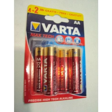 Blister de 6 piles alcaline LR6 max-tech (dont 2 piles gratuites) type AA date VARTA 4706101404